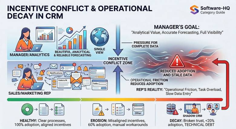 The presence of shadow systems is one of the clearest signs that CRM adoption has broken down at an operational level.